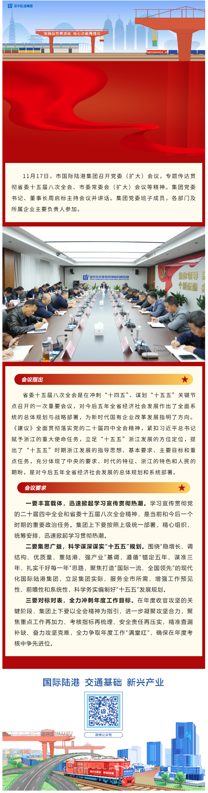 市國際陸港集團召開黨委(擴大)會議傳達貫徹省委十五屆八次全會精神